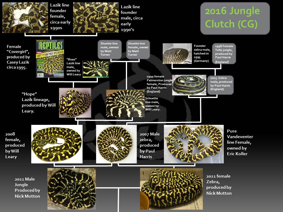 Here is a complete list of all 2016 Carpet Python clutches. The clutch ID code shown below is located in the individual referrence numbers of all available animals in that clutch.