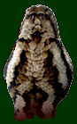 specimens. Generally confined to the ventral surface these shades of blue can be stunning. Like most carpet pythons they are predominantly banded in pattern. This form shows a strong tendency for anterior lateral striping. The head pattern of Morelia s. metcalfei is also distinct, consisting of a strong arrow head pattern on the perimeter with the center being somewhat obscured and poorly defined.